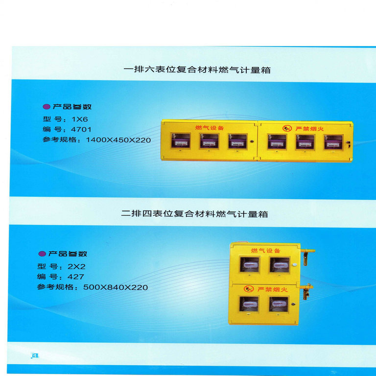 | 產(chǎn)品名稱:天然氣表箱,燃?xì)庀?玻璃鋼燃?xì)獗硐?不銹鋼燃?xì)獗硐?天然氣箱,燃?xì)獗硐?不銹鋼燃?xì)獗硐?玻璃鋼天燃?xì)獗硐?戶外燃?xì)獗硐?天然氣箱,天然氣表箱,天然氣計量箱 標(biāo)準(zhǔn)臥式多表位玻璃鋼燃?xì)庀湓敿?xì)說明 【玻璃鋼燃?xì)庀洹坎馁|(zhì):玻璃鋼 【玻璃鋼燃?xì)庀洹刻攸c: 1:耐酸堿; 2:耐腐蝕; 3:色彩穩(wěn)定性能好; 4:可塑性好、結(jié)構(gòu)好 使用方便。 【玻璃鋼燃?xì)庀洹款伾壕军S